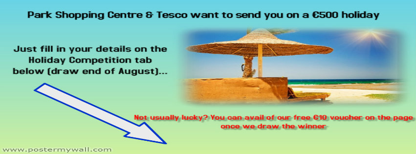 Park Shopping Centre is running a competition to celebrate its recently launched Facebook page. The winner needs to like the page and enter their details and then wait until the end of August to see if they are the lucky party who wins a €500 Sun Holiday Voucher!